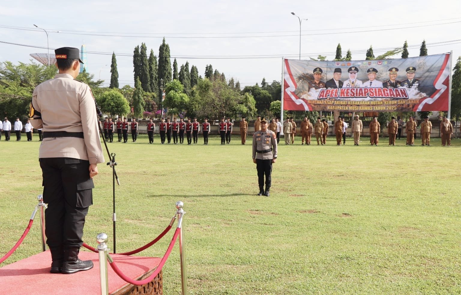 MUSI RAWAS-Dalam rangka upaya melakukan pencegahan kebakaran hutan, kebun dan lahan, Polres Musi Rawas (Mura), bersama stakeholder terkait menggelar Apel Kesiapsiagaan Bencana Asap Akibat Kebakaran Hutan, Kebun dan Lahan Kabupaten Mura Tahun 2025.
